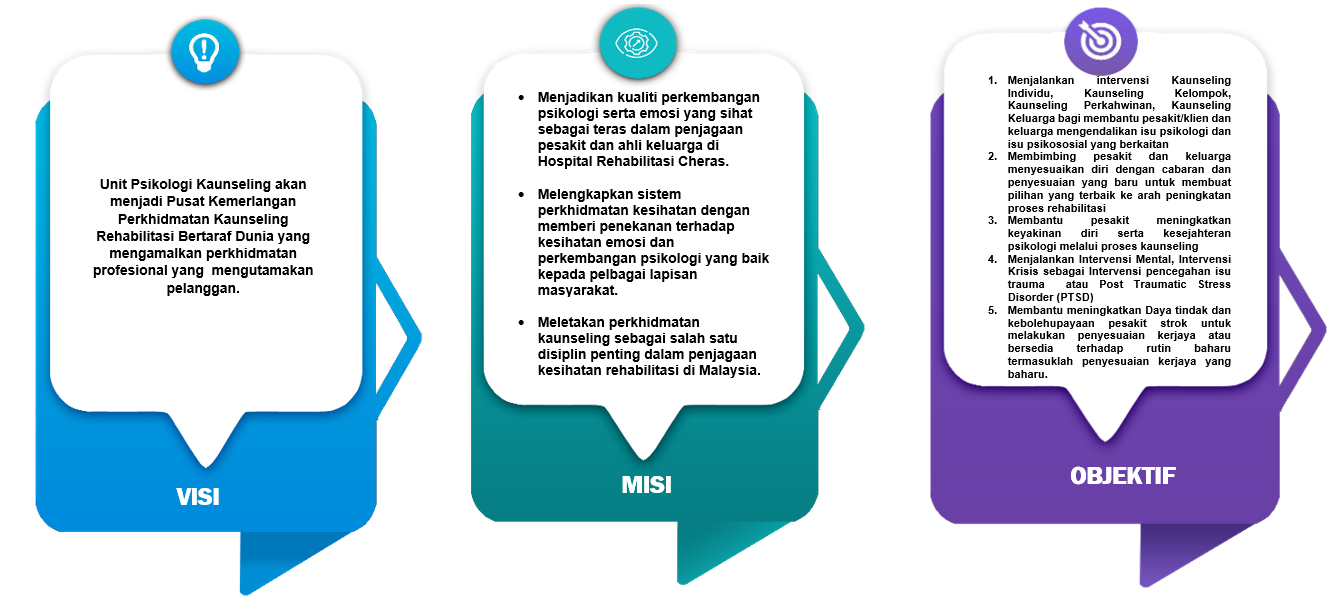 Unit Psikologi Kaunseling telah dimulakan di Hospital Rehabilitasi Cheras pada bulan Ogos tahun 2012 dengan matlamat menawarkan satu persekitaran sokongan dan bantuan sewajarnya kepada pesakit dan penjaga pesakit untuk menjaga kestabilan emosi dan mental yang menekankan aspek pencegahan, pembangunan dan pemulihan.