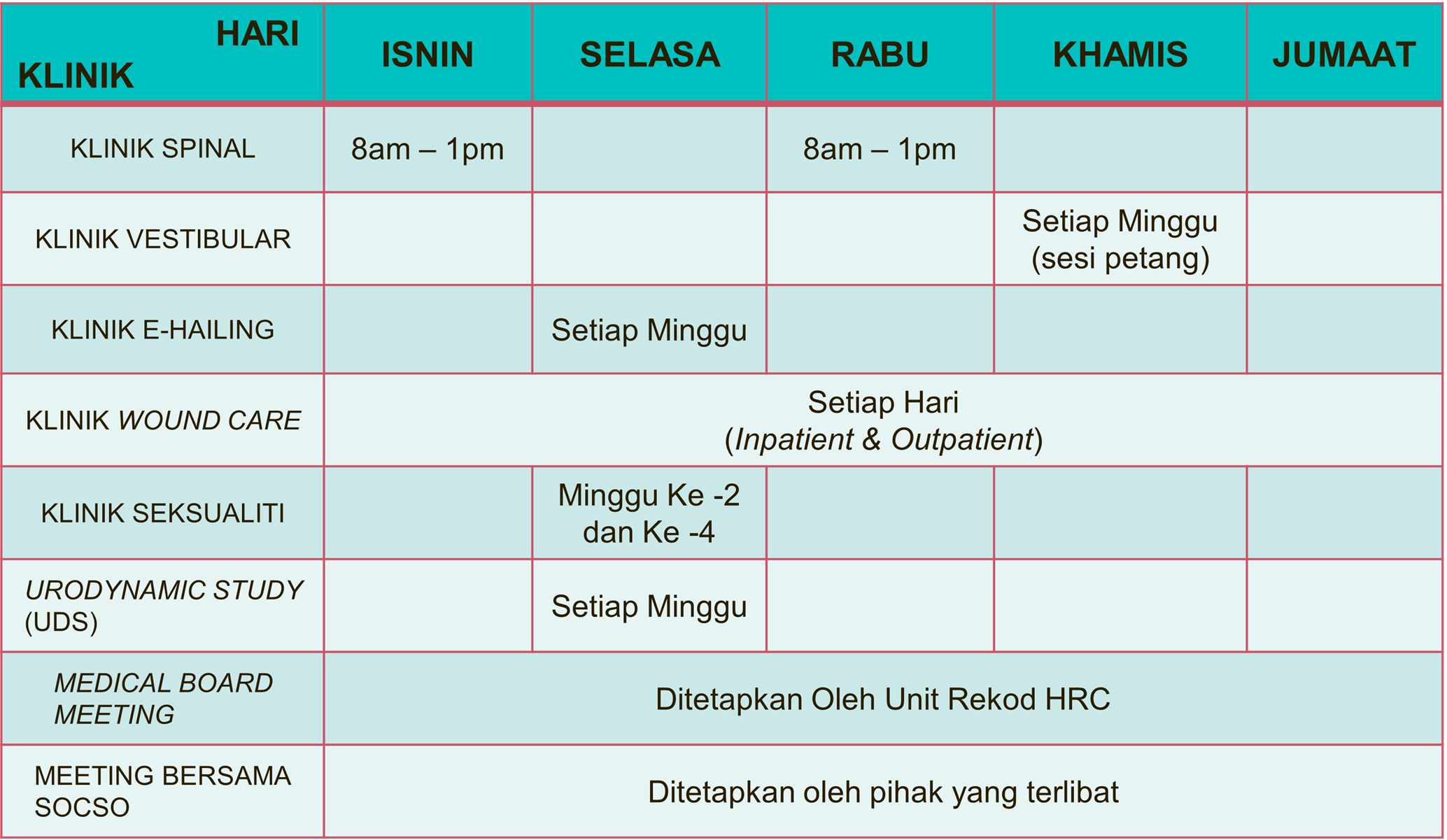 PERKHIDMATAN LAIN DI KLINIK REHABILITASI SPINAL