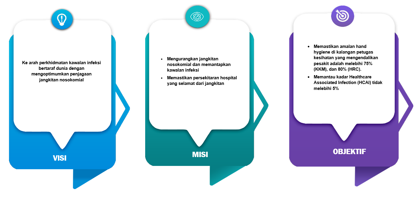- Melakukan tindakan pencegahan Healthcare Associated Infections (HCAI) untuk mengawal peningkatan bilangan kes jangkitan HCAI.